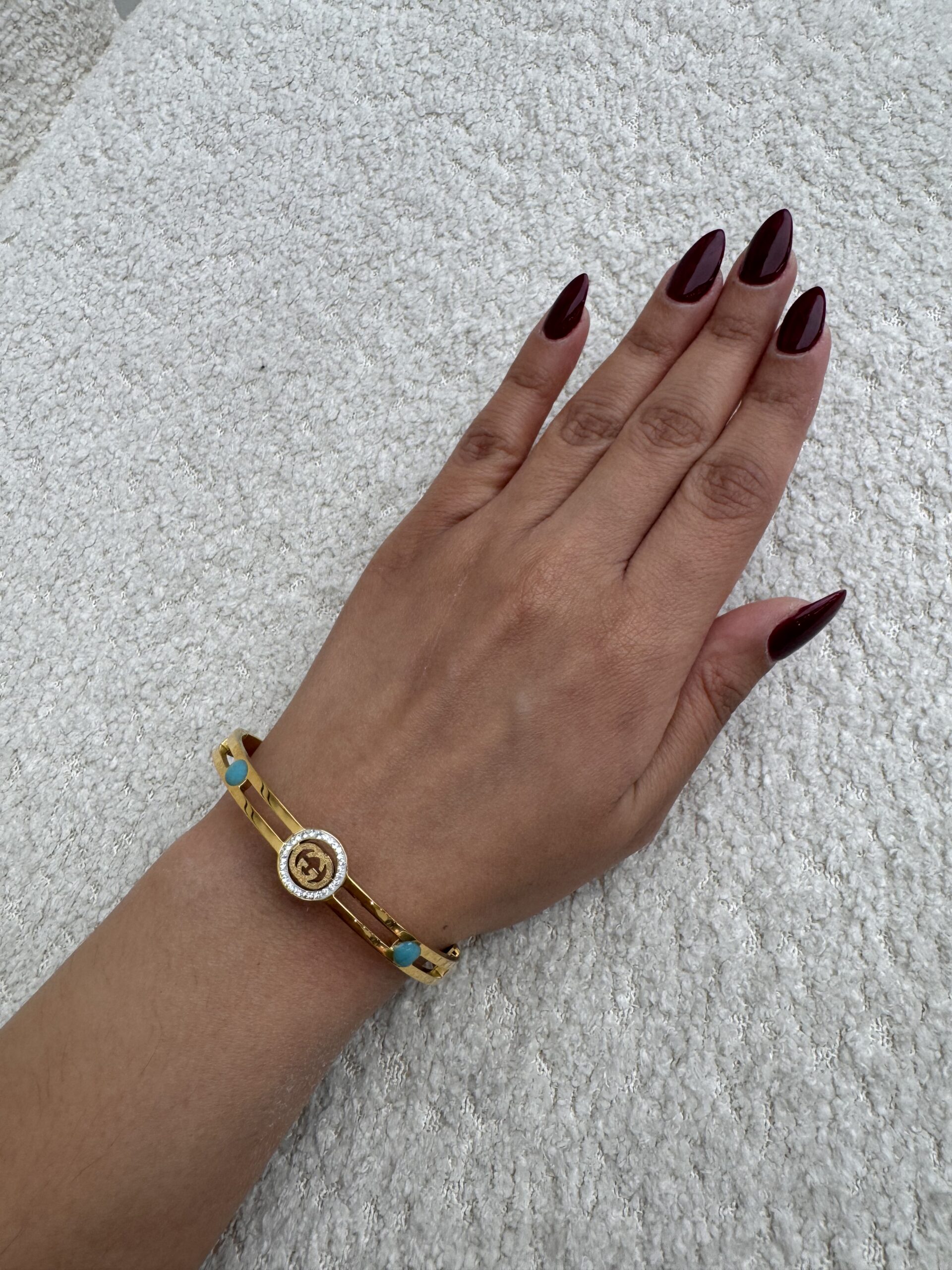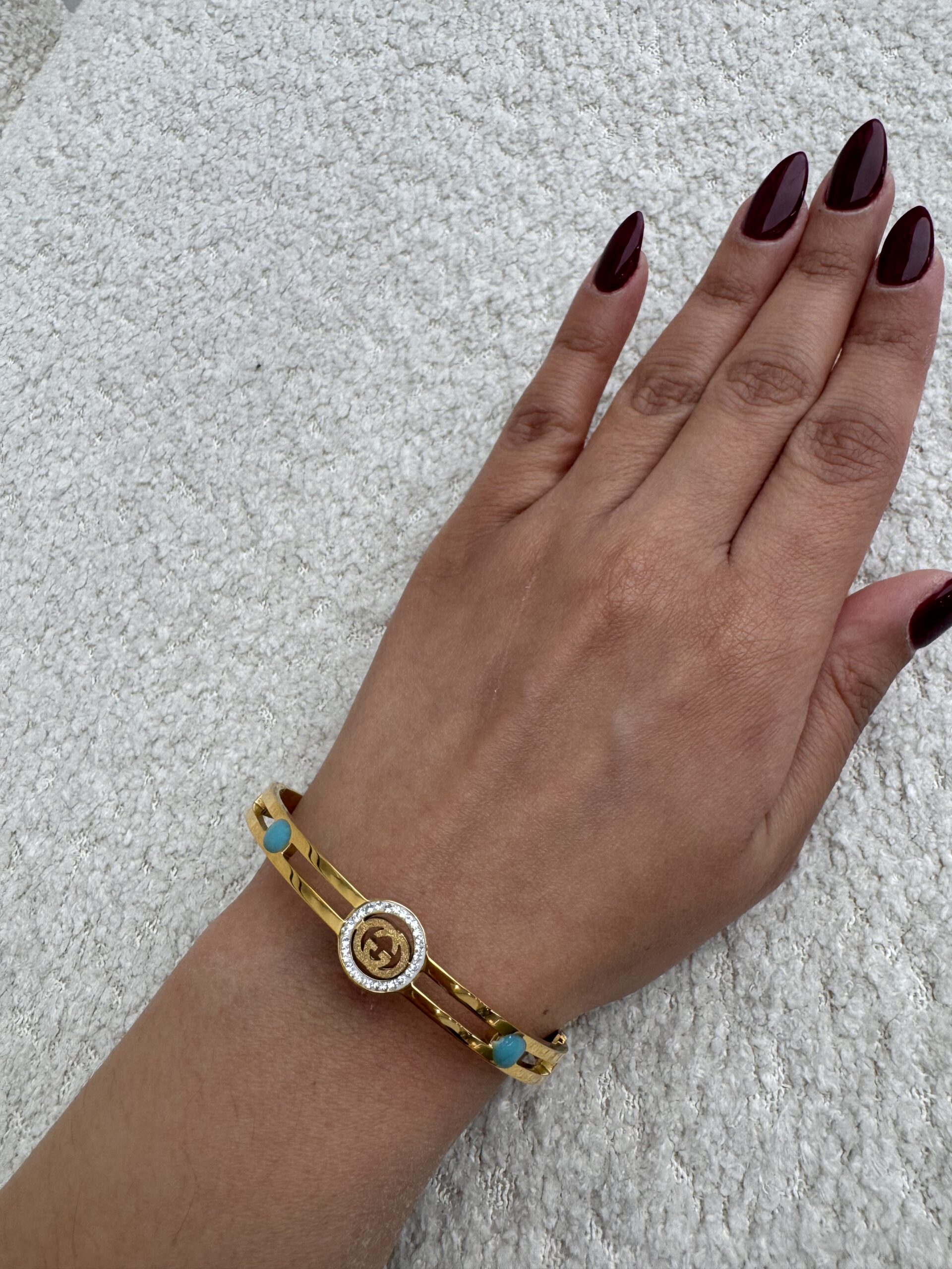 inspired by iconic luxury designs this bracelet balance versatility, and sophistication the rich bluestone, draws the eye with the smaller accent stones add sparkle and dimension making it perfect for both casual outing and special