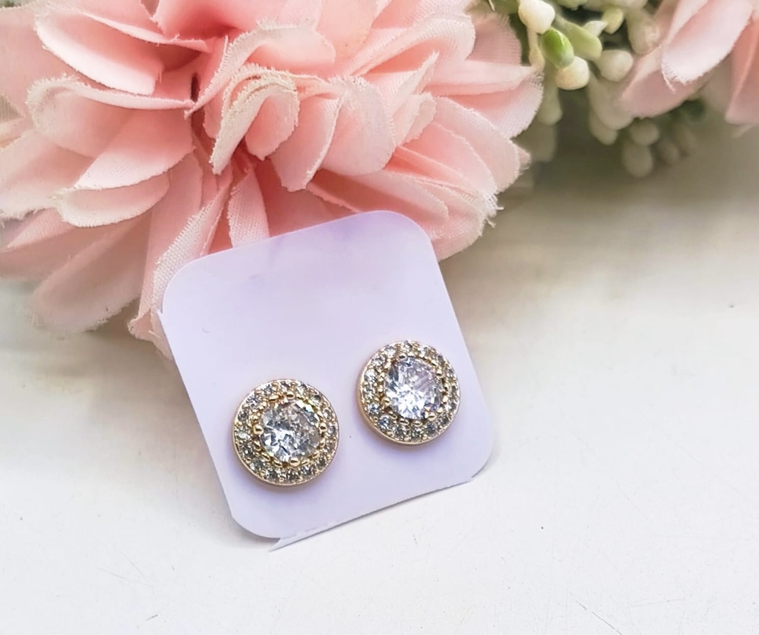 This is a minimal , dainty everyday wear studs , 18k gold plated , stones and so shiny gets you compliments ✨✨✨